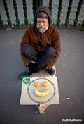 I come into focus and realise the man is thin, inadequately dressed for a cold June day. Trousers held together by string. Maybe Algerian, possibly an asylum seeker.